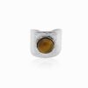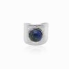 Bague ouverte avec texture martelée, comme érodé par les vagues et le temps qui passe, ornée d’une pierre fine naturelle.