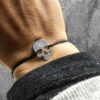 Bracelet cordon avec son pendentif en forme de tête de mort minimaliste et contemporaine.