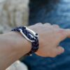 Le bracelet Hook est un bijou emblématique des bijoux Ruban Rouge®, son pendentif en forme d’hameçon de pêcheur aux lignes élégantes et aux courbes épurées, lui confère un esprit nautique et marin.