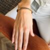 Bracelet jonc en forme cubique, délicatement orné de véritable cuir Galuchat noir.