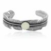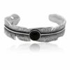 Bracelet jonc plume indienne d’inspiration ethnique, orné d’un cabochon central en pierre fine naturelle.
