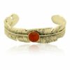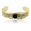 Bracelet jonc plume indienne d’inspiration ethnique, orné d’un cabochon central en pierre fine naturelle.